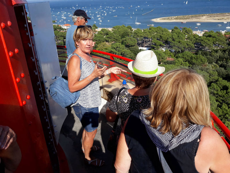Un escalier de 258 marches donne accès au sommet, d'où l'on découvre un panorama très étendu sur la presqu'île, le bassin d'Arcachon, les passes et l'océan.